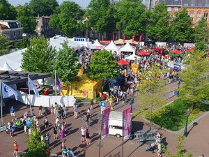 Is op 9 en 10 mei het kloppend hart van de 35e Leiden Marathon. Daar kun je in grote tenten de startnummers en unieke loopshirts ophalen, maar er helaas niet meer inschrijven (alleen online tot 1 mei 12.00 uur). Je kunt er wel jouw medaille laten graveren met de eindtijd.